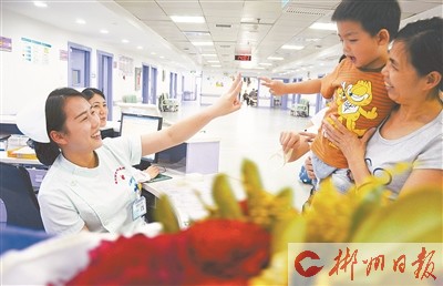 5月12日,是第105個(gè)國際護(hù)士節(jié)。市第一人民醫(yī)院兒童醫(yī)院的護(hù)士們接二連三地收到來自康復(fù)寶寶家屬們送來的鮮花和禮物。近年,我市醫(yī)護(hù)隊(duì)伍大力弘揚(yáng)“南丁格爾精神”,服務(wù)意識(shí)和醫(yī)護(hù)技能不斷提高,受到市民一致好評。圖為小朋友為護(hù)士們送上節(jié)日祝福。