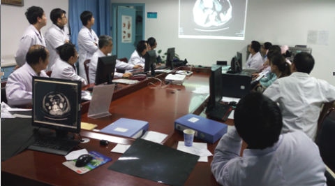 在與肝膽外科主任謝敖文進行了簡單的交流后,劉威教授來到病房對一例重癥胰腺炎及胰體占位的疑難復(fù)雜病人進行現(xiàn)場查房指導(dǎo),然后結(jié)合患者的影像學(xué)資料進行病例討論,對此份病例難點部分做出了客觀的點評和指導(dǎo)。劉威教授為肝膽胰外科及代謝減重外科領(lǐng)域?qū)<?,病例討論完畢后,劉教授還做了題為《腹腔鏡保留脾臟的胰體尾切除》的精彩授課,并與科室醫(yī)務(wù)人員展開充分交流。