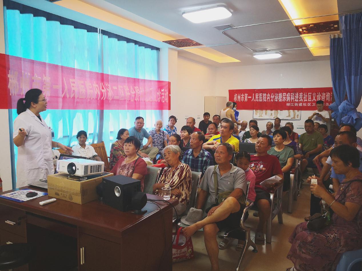 圖為內(nèi)分泌二區(qū)主任醫(yī)師張亞萍為社區(qū)居民“糖尿病教育”健康知識(shí)講座