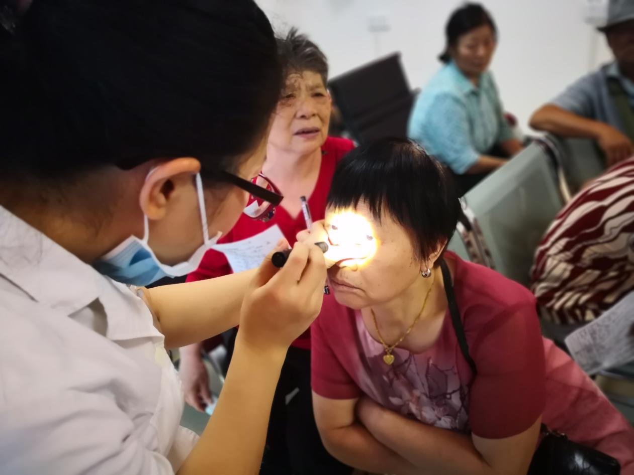 主任醫(yī)師醫(yī)師劉茹在為現(xiàn)場(chǎng)居民“眼部疾病”篩查