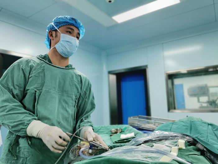 圖4(左):微創(chuàng)內(nèi)鏡組組長鄧國兵副主任醫(yī)師為患者實施脊柱經(jīng)皮內(nèi)鏡手術(shù)