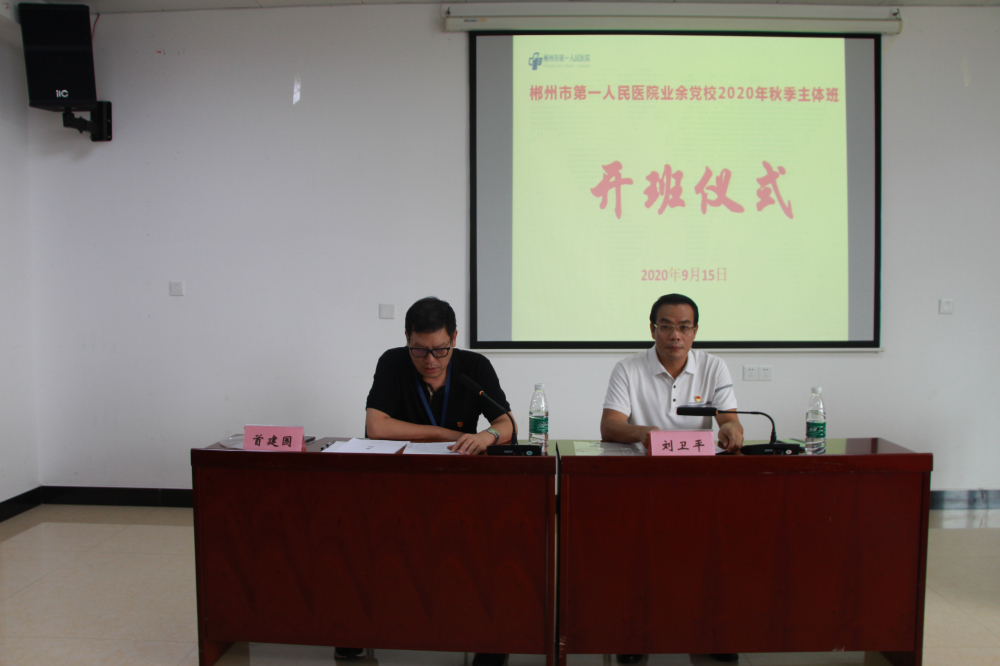 9月15日下午,我院業(yè)余黨校2020年秋季主體班開班儀式在中心醫(yī)院醫(yī)院內(nèi)科樓八樓會議室順利舉行。開班儀式邀請到了湘南學(xué)院副校長劉衛(wèi)平教授出席,來自醫(yī)院職能科室副科以上干部一共80人參加了培訓(xùn)班。