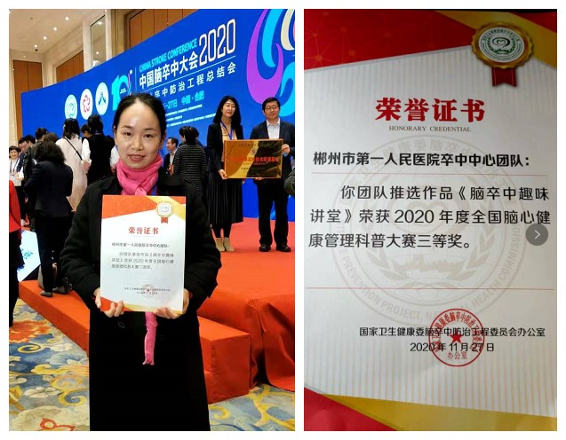 會(huì)上,我院推送的《腦卒中趣味講堂》從全國(guó)百余件科普作品中脫穎而出,榮獲了2020年度全國(guó)腦心健康管理科普大賽三等獎(jiǎng)。