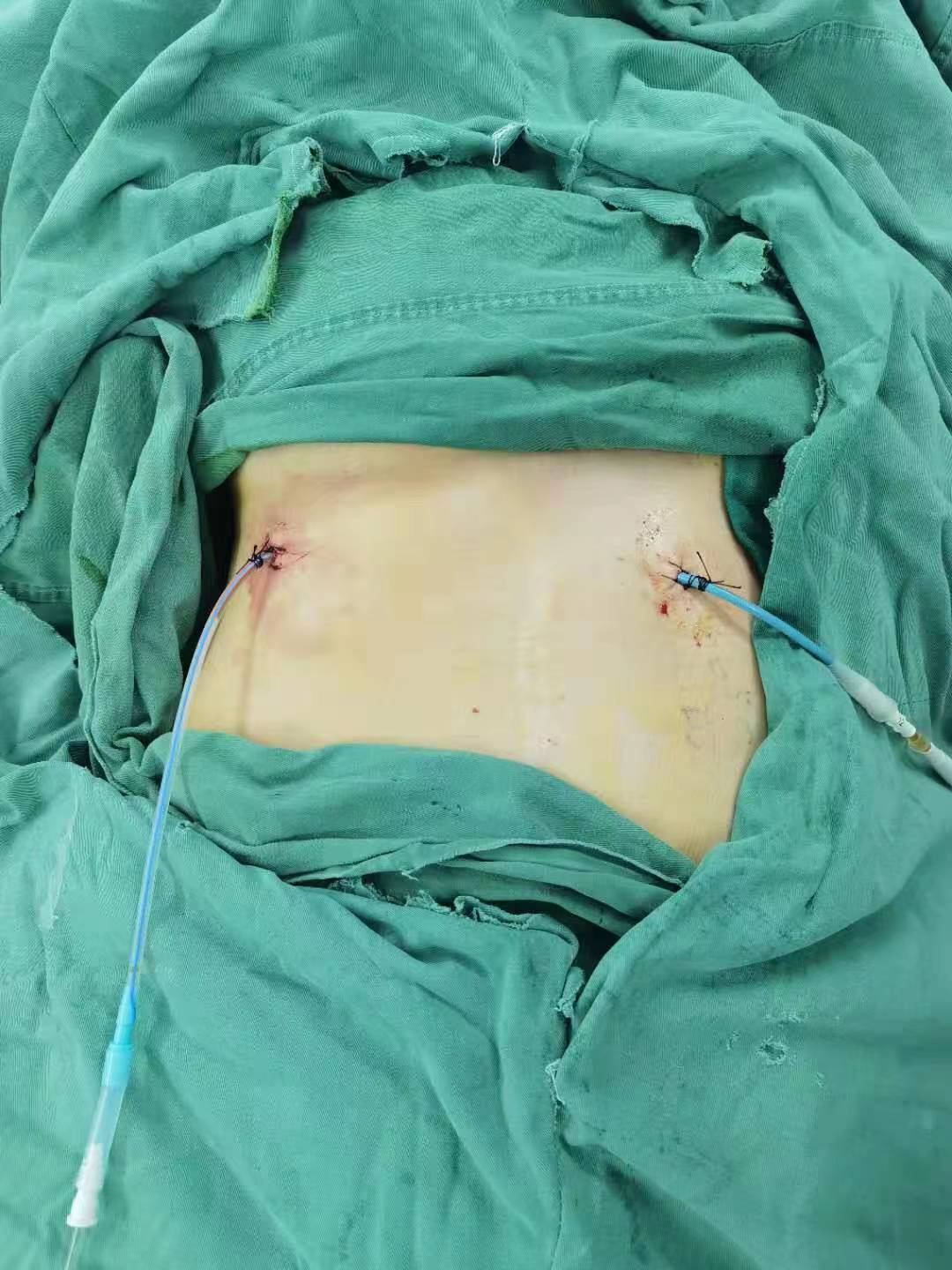 經(jīng)充分完善術(shù)前準(zhǔn)備,于1月20日由曹峻榮副主任醫(yī)師團(tuán)隊(duì)在彩超室李紅波副主任醫(yī)師精準(zhǔn)定位下順利完成經(jīng)皮肝穿刺一期膽管取石術(shù),術(shù)中結(jié)合3d成像情況基本取盡結(jié)石,手術(shù)耗時(shí)約2小時(shí)左右,術(shù)后只在腹部留置兩根筷子大小引流管。術(shù)后患者第二天便能常規(guī)進(jìn)食及下床活動,且無明顯腹部不適。