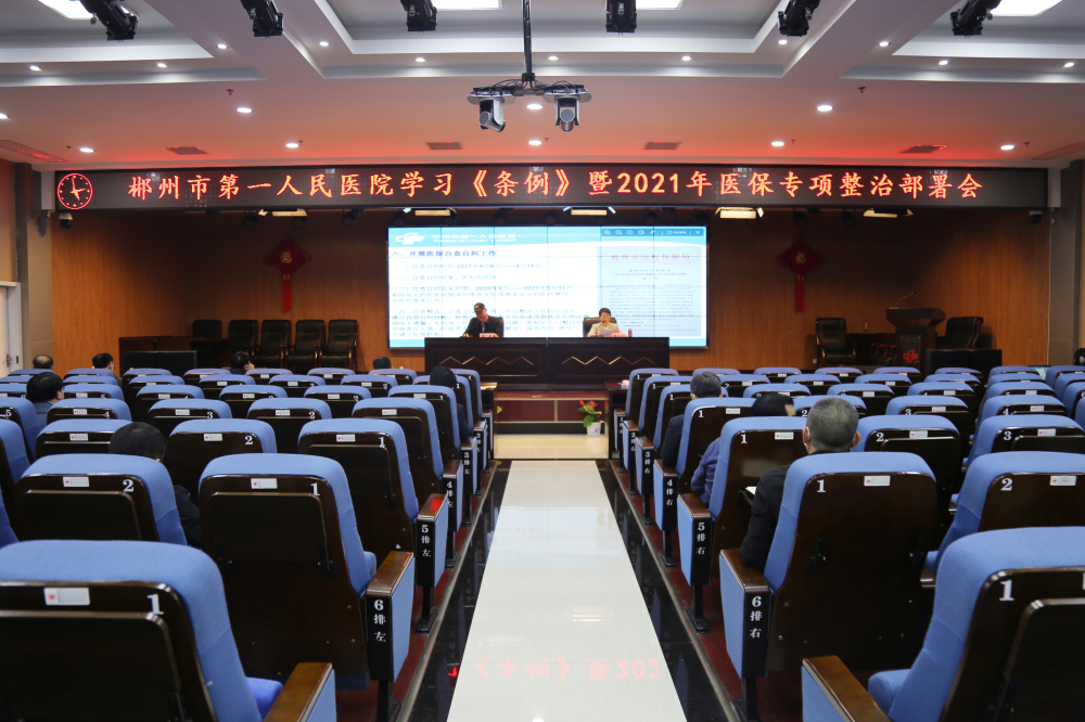 4月15日下午,郴州市第一人民醫(yī)院組織召開宣傳貫徹《醫(yī)療保障基金使用監(jiān)督管理?xiàng)l例》暨2021年打擊欺詐騙保專項(xiàng)整治行動(dòng)動(dòng)員部署會(huì)。全院臨床科室主任、護(hù)士長(zhǎng)、職能科室負(fù)責(zé)人300多人參加了會(huì)議,院長(zhǎng)雷冬竹主持并做專題部署。