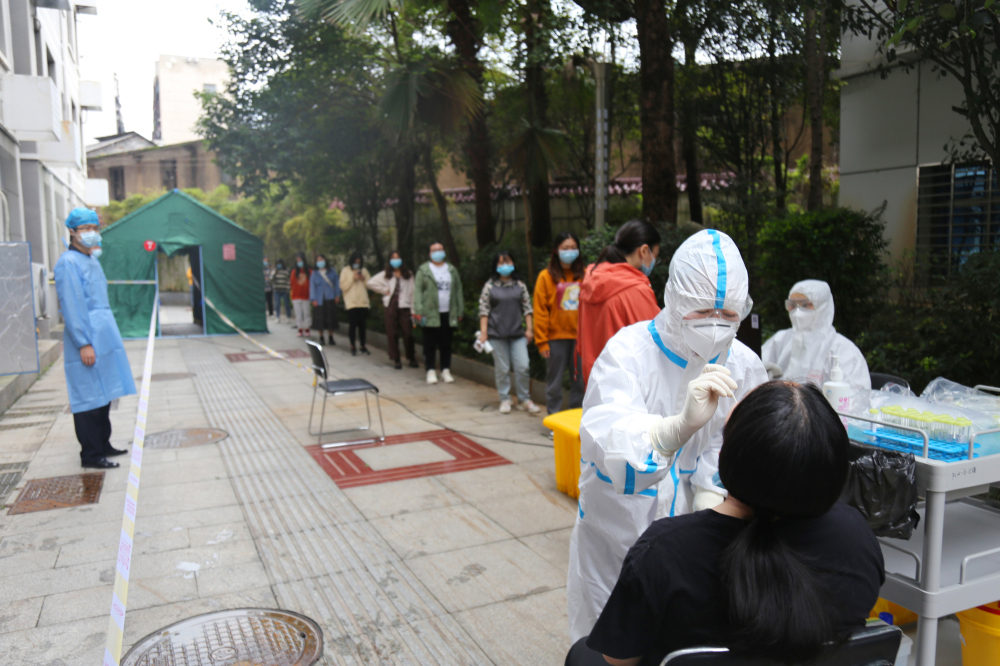 當天下午2:30召開了演練啟動會,雷冬竹院長宣布演練開始。本次演練演練模擬了我院工作人員全員核酸檢測中一份“1:10”混采標本陽性,快速啟動響應,迅速排查后發(fā)現(xiàn)研究生劉某陽為陽性確診病人,立即封控和管控相關區(qū)域,開展快速全員核酸篩查,負壓車轉移到定點醫(yī)院市二醫(yī)院。并模擬由我院派出重癥救治專家協(xié)助二醫(yī)院進行重癥病人救治,實現(xiàn)院級聯(lián)動。消毒組對處置人員及場所、警戒區(qū)、患者留滯的周圍環(huán)境等進行全面消殺。