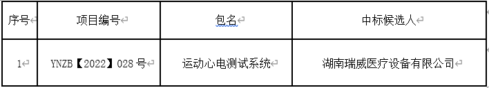郴州市第一人民醫(yī)院運動心電測試系統(tǒng)采購項目,評標(biāo)委員會于2022年10月14日在郴州市第一人民醫(yī)院進行了評標(biāo)。評標(biāo)委員會按照招標(biāo)文件規(guī)定的評標(biāo)辦法進行評審,推薦中標(biāo)候選人如下: