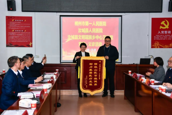 隨后,雷冬竹一行與隨行專家組來到文明瑤族鄉(xiāng)中心衛(wèi)生院,與汝城縣人民醫(yī)院、文明瑤族鄉(xiāng)中心衛(wèi)生院交流對(duì)口幫扶工作經(jīng)驗(yàn),圍繞黨的二十大報(bào)告提出的“健康中國(guó)”建設(shè),如何促進(jìn)優(yōu)質(zhì)醫(yī)療資源擴(kuò)容和區(qū)域平衡布局,提高基層防病治病的健康管理能力,就未來合作方向進(jìn)行探討,雷冬竹強(qiáng)調(diào)要立足站位作幫扶、立足學(xué)科發(fā)展作幫扶、立足服務(wù)作幫扶。專家組還為當(dāng)?shù)乩习傩者M(jìn)行免費(fèi)健康體檢和義診,受到一致好評(píng)。