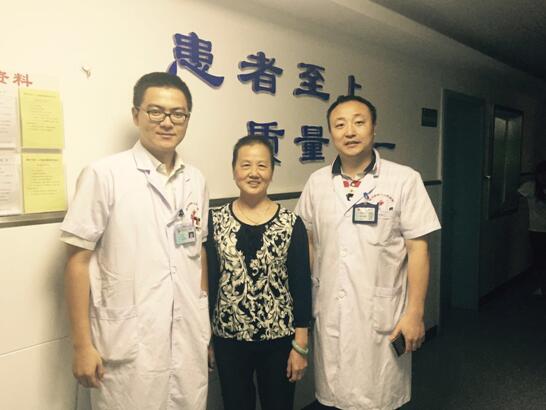 方松醫(yī)生(左一)、周朝陽醫(yī)生與獲獎病例患者合影