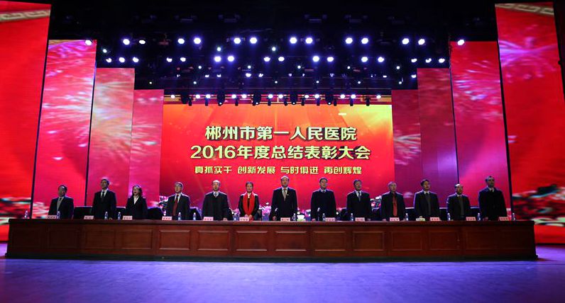 金猴辭舊歲,瑞雞送春來。1月23日晚,郴州市第一人民醫(yī)院2016年度工作總結(jié)暨表彰大會(huì)上在市演藝中心隆重舉行。會(huì)上,院長黃仁彬?qū)︶t(yī)院2016年工作進(jìn)行了全面總結(jié),并部署了2017年工作任務(wù)。醫(yī)院領(lǐng)導(dǎo)班子成員,各醫(yī)療區(qū)負(fù)責(zé)人、各科室負(fù)責(zé)人、護(hù)士長、 “十佳人員”等各類先進(jìn)代表共900余人齊聚一堂,共賀驕人成績。黨委書記首建國主持會(huì)議。