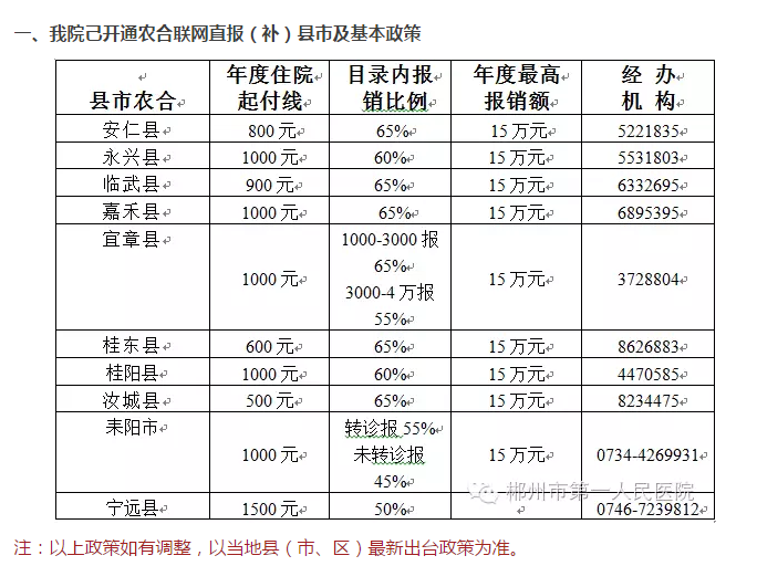 郴州市第一人民醫(yī)院已經(jīng)開通十縣市農(nóng)合直補