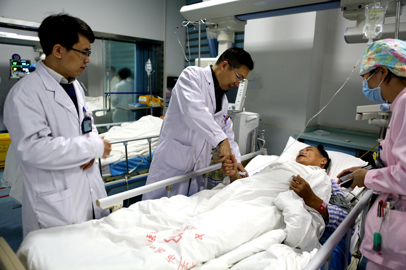 ?????? 無獨有偶, 19日15時許,家住郴州市北湖區(qū)下湄橋的王大爺中午飯后突發(fā)暈倒、言語不清,右側(cè)肢體也不能活動,陪同的人發(fā)現(xiàn)后急忙送往郴州市第三人民醫(yī)院,行頭顱CT未見明顯異常,給予輸液治療無明顯好轉(zhuǎn),家屬要求急轉(zhuǎn)郴州市第一人民醫(yī)院進一步治療。于17時50分到達醫(yī)院后,醫(yī)生見王大爺已神志不清,右側(cè)肢體偏癱,判定為急性腦梗塞,立即啟動醫(yī)院腦卒中急救綠色通道,抽血、通知神經(jīng)內(nèi)科醫(yī)生。神經(jīng)內(nèi)科根據(jù)病情,將周大爺送入急診ICU病房,緊急行rt-PA靜脈溶栓。