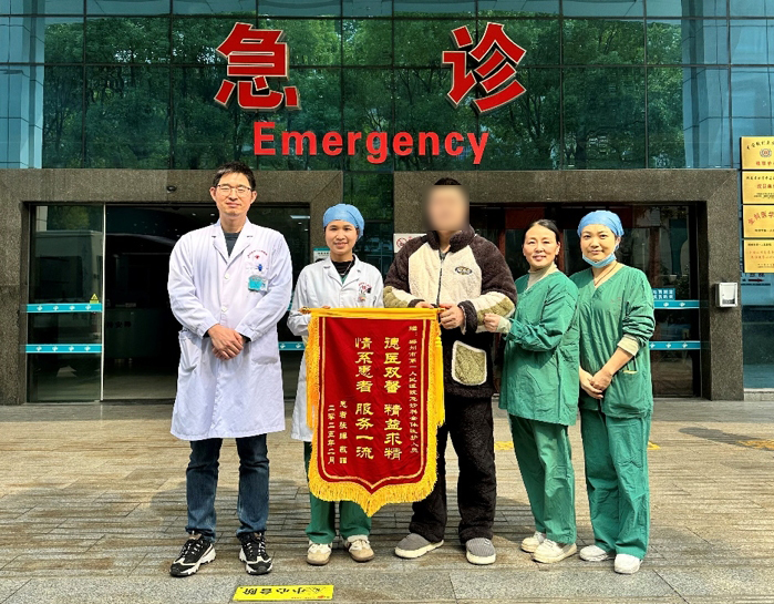 2月14日,郴州市第一人民醫(yī)院急診科住院醫(yī)師唐林娜收到了一份特殊的禮物——一面印有“情系患者,服務(wù)一流;德醫(yī)雙馨,精益求精!”十六個(gè)大字的錦旗。這面錦旗由患者張某及家屬一同送來,承載著他及家人對(duì)唐林娜醫(yī)生和急診科全體醫(yī)務(wù)人員精湛醫(yī)術(shù)和暖心服務(wù)的深深感激。