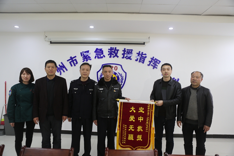 ? ? ? ?2月26日下午,郴州市永興縣公安局交警大隊負(fù)責(zé)人帶著一面錦旗來到郴州市第一人民醫(yī)院,特別感謝醫(yī)生們精湛的醫(yī)術(shù),并及時啟動直升機生命救援搶救了該局一名干警的生命。