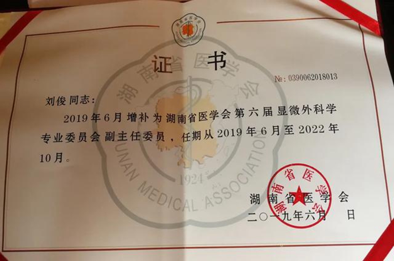 ? ? ? ? 劉俊博士近20年來為了顯微外科事業(yè)嘔心瀝血,背后付出了常人難以想象的艱辛和汗水,其個人近年來在顯微外科領(lǐng)域做出的卓越成績也是有目共睹的,由其帶領(lǐng)的學科知名度不斷提升,在行業(yè)內(nèi)樹立了典范。此次當選省醫(yī)學會顯微外科專業(yè)委員會副主委可謂實至名歸,也為郴州市第一人民醫(yī)院和醫(yī)院顯微外科帶來了莫大榮耀。?