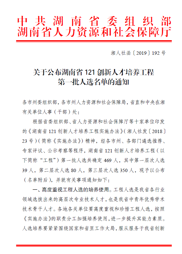羅迪賢等三人入選湖南省121 創(chuàng)新人才培養(yǎng)工程人選名單