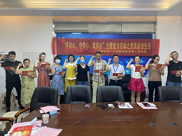 為慶祝建黨99周年,回顧黨的光輝歷程,謳歌黨的光輝業(yè)績,繼承和發(fā)揚黨的光榮傳統(tǒng)和優(yōu)良作風,堅定黨員理想信念,增強服務(wù)意識,2020年7月3日,郴州市第一人民醫(yī)院機關(guān)第二黨支部召開慶祝建黨99周年專題組織生活會暨“尋初心、守初心、踐初心”主題黨日活動,機關(guān)第二黨支部23名黨員與4名入黨積極分子參加了這次主題黨日活動。