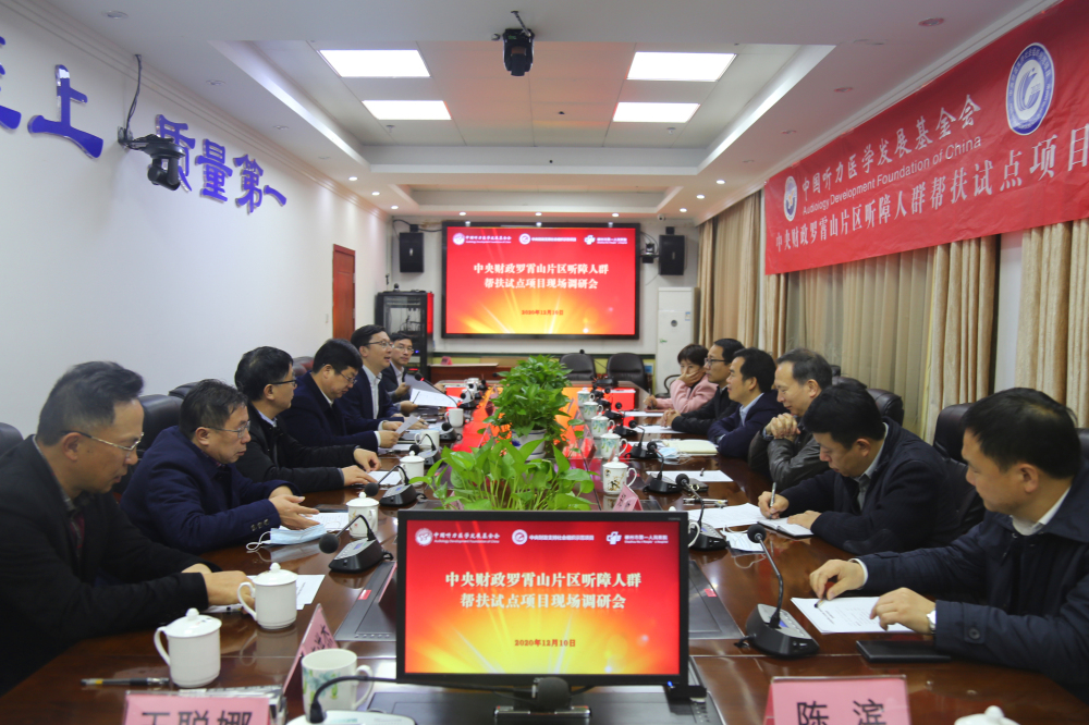 12月10日,民政部社會組織管理局副局長陳小勇一行5人來我院調(diào)研羅霄山片區(qū)聽障人群幫扶試點項目實施情況,中國聽力醫(yī)學(xué)發(fā)展基金會與我院聯(lián)合組織召開座談會,郴州市委常委、副市長徐懷好,市民政局黨組書記、局長周明強,郴州市第一人民醫(yī)院副院長李杰鋒、總會計師張甄等出席會議,詳細了解項目進展情況,對項目推進中遇到的困難和問題現(xiàn)場提出意見和建議。中國聽力醫(yī)學(xué)發(fā)展基金會秘書長、黨支部書記公澤忠主持會議,綜合處二級調(diào)研員鄭帥、信用信息宣傳處三級調(diào)研員沈新華、湖南省民政廳社會組織管理局局長朱志明、湖南省社會組織管理局四級調(diào)研員肖燦等陪同調(diào)研。