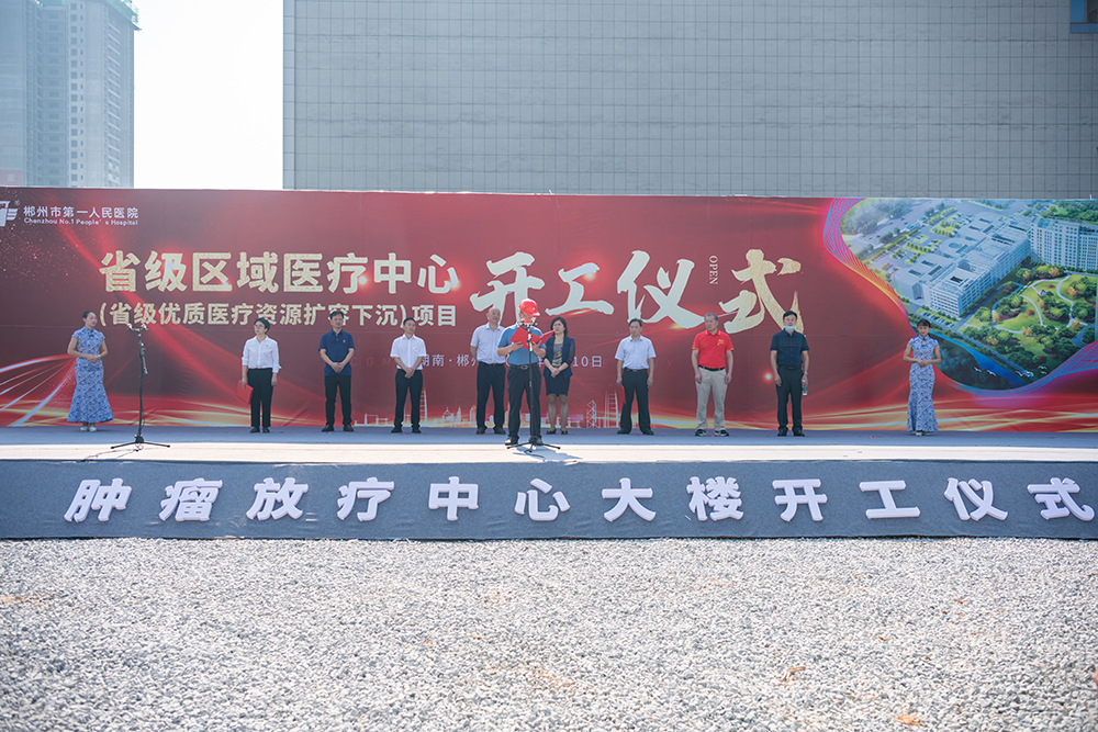 9月10日,郴州市第一人民醫(yī)院省級(jí)區(qū)域醫(yī)療中心優(yōu)質(zhì)醫(yī)療資源擴(kuò)容下沉建設(shè)項(xiàng)目——腫瘤放療中心大樓工程舉行開(kāi)工儀式,市政府副秘書(shū)長(zhǎng)、二級(jí)巡視員黃崢嶸宣布開(kāi)工。