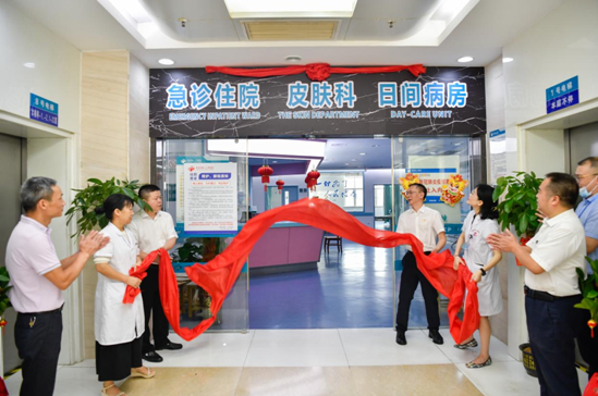 隨后,歐陽邦輝、眼耳鼻喉醫(yī)院執(zhí)行院長唐金勇、皮膚科主任胡杏林、副主任王文娟共同為皮膚科揭牌,并與全體醫(yī)護(hù)人員合影留念。