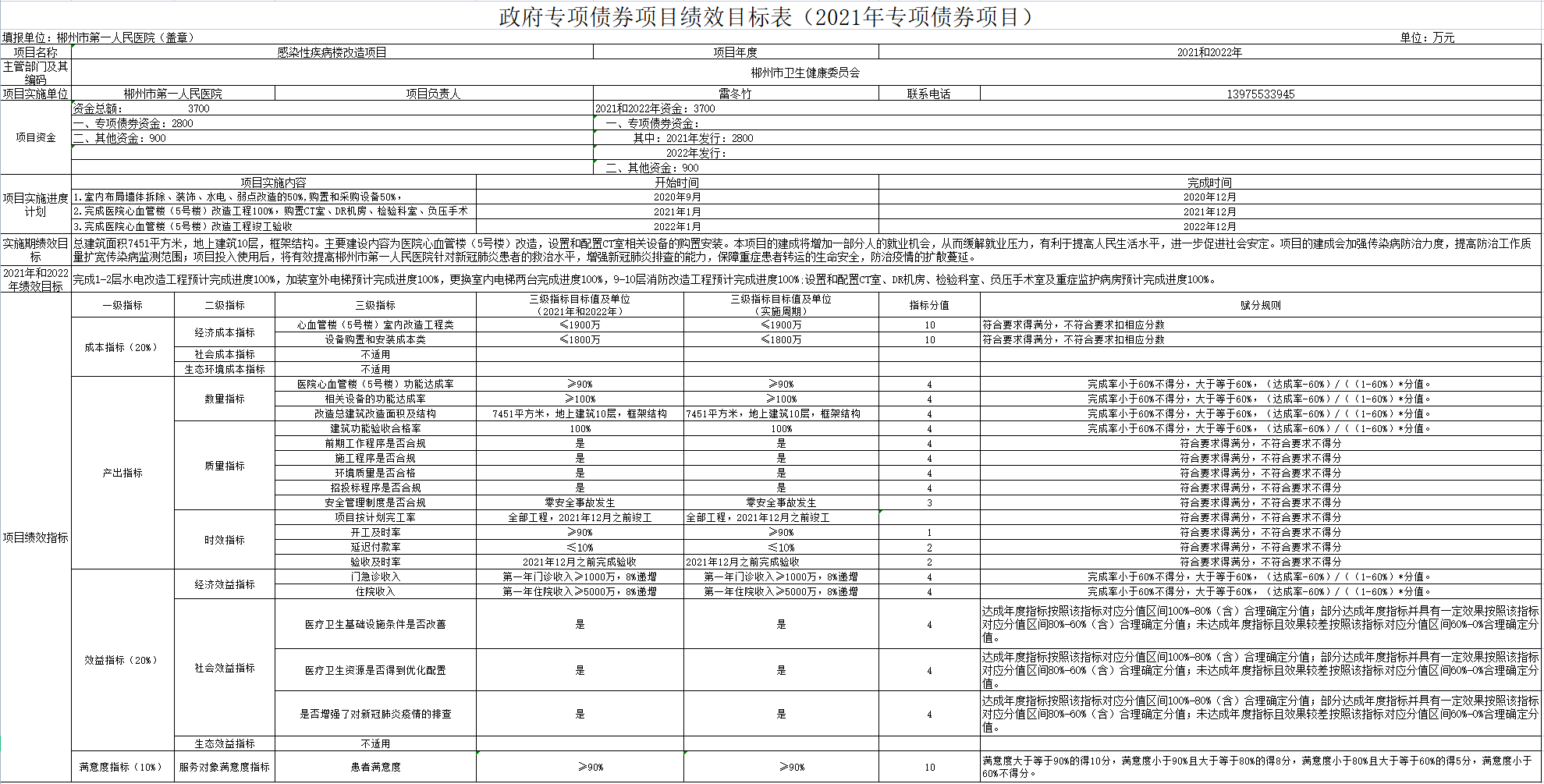 附件:郴州市第一人民醫(yī)院政府專項債券感染性疾病樓改造項目績效目標表(2021和2022年專項債券項目)