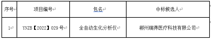 郴州市第一人民醫(yī)院全自動生化分析儀采購項目,評標(biāo)委員會于2022年10月14日在郴州市第一人民醫(yī)院進(jìn)行了評標(biāo)。評標(biāo)委員會按照招標(biāo)文件規(guī)定的評標(biāo)辦法進(jìn)行評審,推薦中標(biāo)候選人如下:
