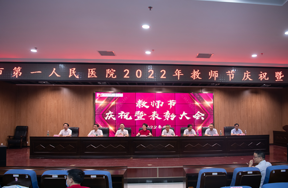 為增強(qiáng)廣大臨床教師獻(xiàn)身教育事業(yè)的信念,提高醫(yī)院教學(xué)管理水平和教育質(zhì)量,9月9日下午,在全國第38個(gè)教師節(jié)即將到來之際,郴州市第一人民醫(yī)院召開2022年教師節(jié)慶祝暨表彰大會。會議對過去一年醫(yī)院教育教學(xué)工作進(jìn)行了總結(jié),對醫(yī)院教育教學(xué)先進(jìn)集體和優(yōu)秀個(gè)人進(jìn)行表彰。醫(yī)院領(lǐng)導(dǎo)班子全體成員出席大會,醫(yī)院各教研室主任、帶教老師代表、學(xué)生代表200余人參加。