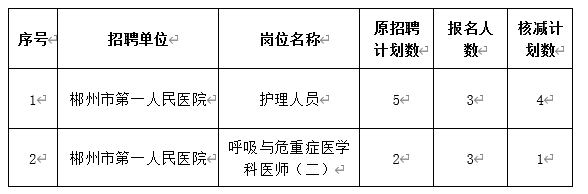 郴州市第一人民醫(yī)院2023年公開招聘高學歷人員現(xiàn)場報名工作已于2023年2月23日17:30截止?,F(xiàn)將崗位核減有關事項公告如下: