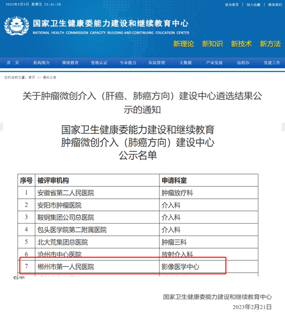 近日,國家衛(wèi)健委關(guān)于腫瘤微創(chuàng)介入(肝癌、肺癌方向)建設(shè)中心遴選結(jié)果公布,經(jīng)過條件篩選、初審答辯、專家委員會評估,全國范圍內(nèi)一千余家符合申報(bào)資質(zhì)的醫(yī)院中,郴州市第一人民醫(yī)院脫穎而出,同時(shí)獲批肝癌、肺癌兩個腫瘤微創(chuàng)介入建設(shè)中心,其中,影像醫(yī)學(xué)中心以其在肺癌介入綜合治療領(lǐng)域的多年經(jīng)驗(yàn)與耕耘,斬獲此殊榮。