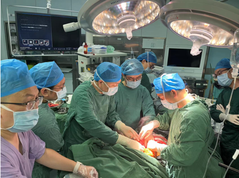 “立即開腹進(jìn)去止血!”肝膽外科副主任于毅一刻都不敢遲疑,用最快的速度開腹,進(jìn)入腹腔尋找出血點(diǎn)。在普外科、血管外科專家的配合下,很快找到了出血位置——只見患者結(jié)腸右動脈、右靜脈已經(jīng)斷成幾節(jié),胰腺周邊也出現(xiàn)了血腫,手術(shù)團(tuán)隊(duì)立即實(shí)行腸系膜動靜脈結(jié)扎術(shù),為患者緊急止血。麻醉團(tuán)隊(duì)迅速準(zhǔn)確地應(yīng)用藥物,確?;颊咴谛g(shù)中的平穩(wěn)體征,糾正其凝血功能紊亂,輸血科確保救命血液的供應(yīng)……