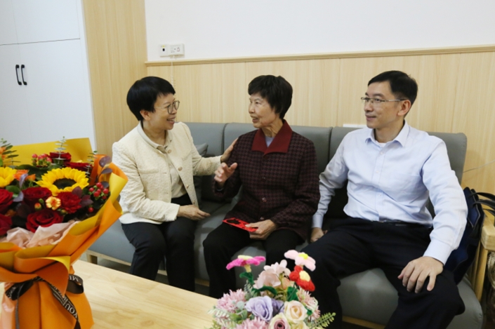 20日下午,院黨委書記雷冬竹帶領(lǐng)相關(guān)職能科室負(fù)責(zé)人到康養(yǎng)中心走訪慰問??叼B(yǎng)中心于2021年7月開業(yè),目前有110余位長者入住,其中就有一部分是郴州市第一人民醫(yī)院的退休職工。雷冬竹向所有入住的長者致以節(jié)日問候,關(guān)切地詢問他們的身體和生活情況,對(duì)康養(yǎng)中心提供的服務(wù)有什么意見和建議,并希望他們保重身體,快樂生活。