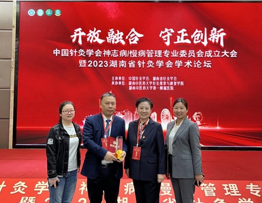 2023年10月21日,由中國針灸學(xué)會(huì)、湖南省針灸學(xué)會(huì)主辦的以“開放融合,守正創(chuàng)新”為主題的“中國針灸學(xué)會(huì)神志病/慢病管理專業(yè)委員會(huì)成立大會(huì)暨2023年湖南省針灸學(xué)會(huì)學(xué)術(shù)論壇”在長沙召開。會(huì)上,郴州市第一人民醫(yī)院副院長謝輝教授榮膺“華佗金針獎(jiǎng)”。
