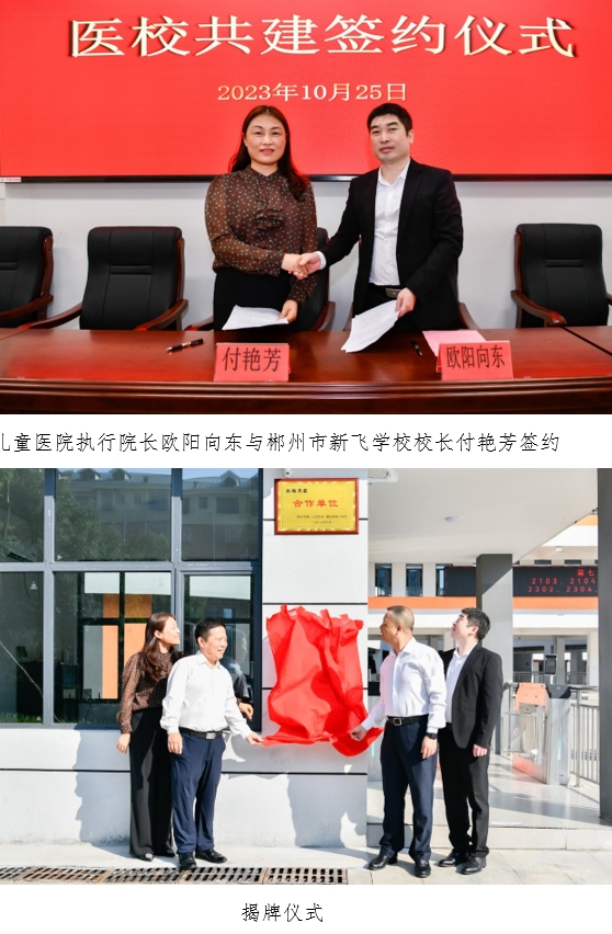郴州市新飛學(xué)校是郴州市教育局直屬管理的一所高起點(diǎn)、示范性、有特色、現(xiàn)代化的公辦九年一貫制學(xué)校,于今年下半年正式投入使用,對(duì)保障學(xué)生身心健康有著迫切需求。郴州市兒童醫(yī)院建院于2006年,長(zhǎng)期致力于增強(qiáng)青少年體質(zhì)、促進(jìn)青少年健康成長(zhǎng),積累了豐富的經(jīng)驗(yàn)。此次雙方秉承“一切為了師生健康”宗旨,遵循互信、互助、自愿、雙贏的原則,達(dá)成創(chuàng)建醫(yī)校合作聯(lián)合體協(xié)議。