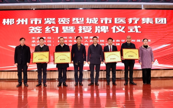 1月26日,郴州市緊密型城市醫(yī)療集團(tuán)簽約授牌儀式在郴州市第一人民醫(yī)院多媒體會(huì)議室舉行。湖南省衛(wèi)生健康委黨組副書(shū)記、副主任祝益民,郴州市副市長(zhǎng)楊平、市衛(wèi)生健康委黨委書(shū)記曾忠良、市醫(yī)療保障局黨組書(shū)記柳媚及市緊密型城市醫(yī)療集團(tuán)管理專班全體成員、緊密型城市醫(yī)療集團(tuán)各成員單位和協(xié)作單位負(fù)責(zé)人參加,市政府副秘書(shū)長(zhǎng)段外賓主持。
