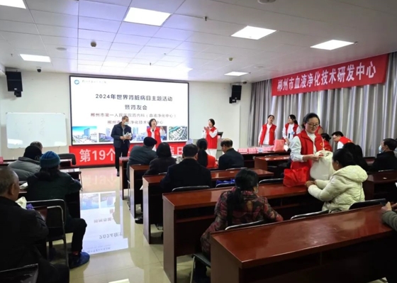 為了提高大眾對(duì)腎臟病的關(guān)注,降低腎臟病的發(fā)生,加深大眾對(duì)腎臟病及并發(fā)癥的認(rèn)識(shí),同時(shí)讓人們認(rèn)識(shí)到早期檢測(cè)和預(yù)防慢性腎病的重要性。3月14日,郴州市第一人民醫(yī)院腎內(nèi)科(血液凈化中心)、內(nèi)科片第三黨支部、郴州市血液凈化技術(shù)研發(fā)中心在內(nèi)科大樓八樓舉辦了“世界腎臟日”系列活動(dòng),普及健康知識(shí),加深公眾對(duì)慢性腎臟病的了解和認(rèn)識(shí),幫助患者有效提高生活質(zhì)量。廖湘平主任、陳香文主任、郭勝根主任、鄒琴主任、劉黃華護(hù)士長(zhǎng)、李淑梅護(hù)士長(zhǎng)、曹雪莉護(hù)士長(zhǎng)及科室醫(yī)護(hù)人員與腎友們近60人參加活動(dòng)。