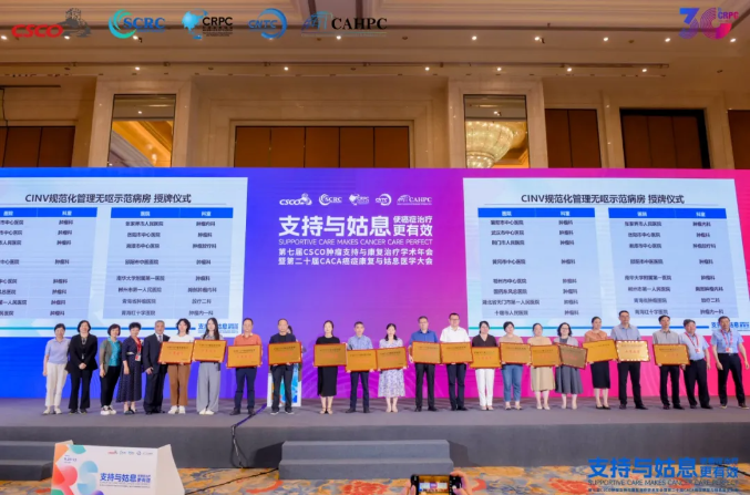6月22日,在中國抗癌協(xié)會(huì)癌癥康復(fù)與姑息治療專業(yè)委員會(huì)(crpc)年會(huì)上,郴州市第一人民醫(yī)院東院胸部腫瘤內(nèi)科榮獲“全國cinv規(guī)范化管理示范病房”稱號(hào),胸部腫瘤內(nèi)科護(hù)士長李玉芳代表醫(yī)院接受授牌。該授牌是我院繼“癌痛規(guī)范化治療示范病房”后又一新項(xiàng)目落地。
