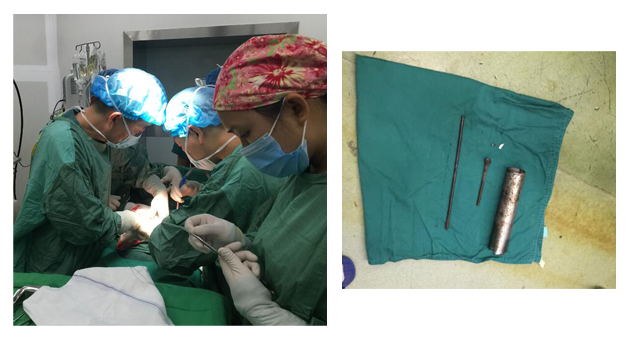 5月30日,永州市江華縣一男子朱某從被鐵皮廠房掉下,一根拇指粗鋼筋從其腰部插進(jìn)了腹部。事發(fā)后,家屬以及江華縣人民醫(yī)院迅速將其送到郴州市第一人民醫(yī)院搶救。6月1日,經(jīng)過我院普外科專家三個(gè)多小時(shí)緊張的手術(shù),該名男子體內(nèi)的鋼筋順利取出并脫離生命危險(xiǎn)。