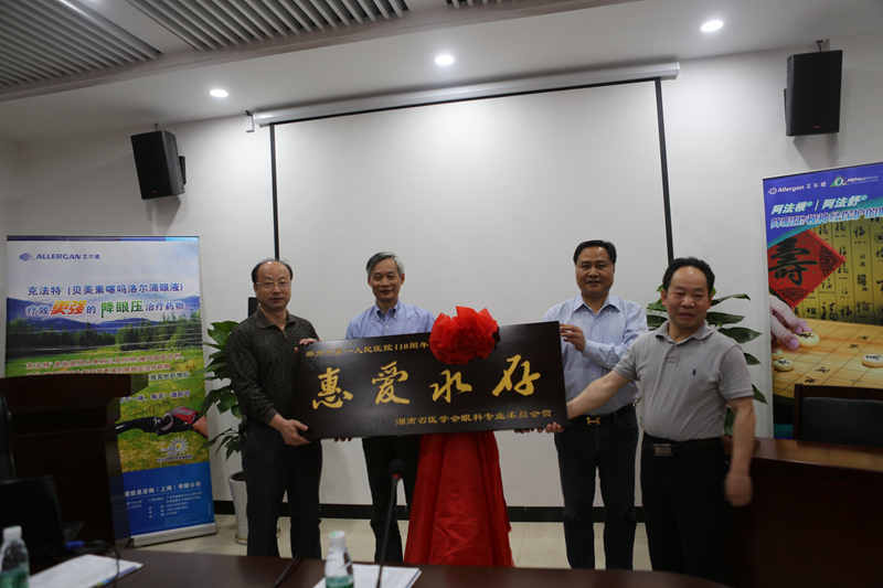 ????? 會議期間,湖南省醫(yī)學(xué)會眼科學(xué)專業(yè)委員會還向郴州市第一人民醫(yī)院110年院慶贈送“惠愛永存”牌匾。(劉振)