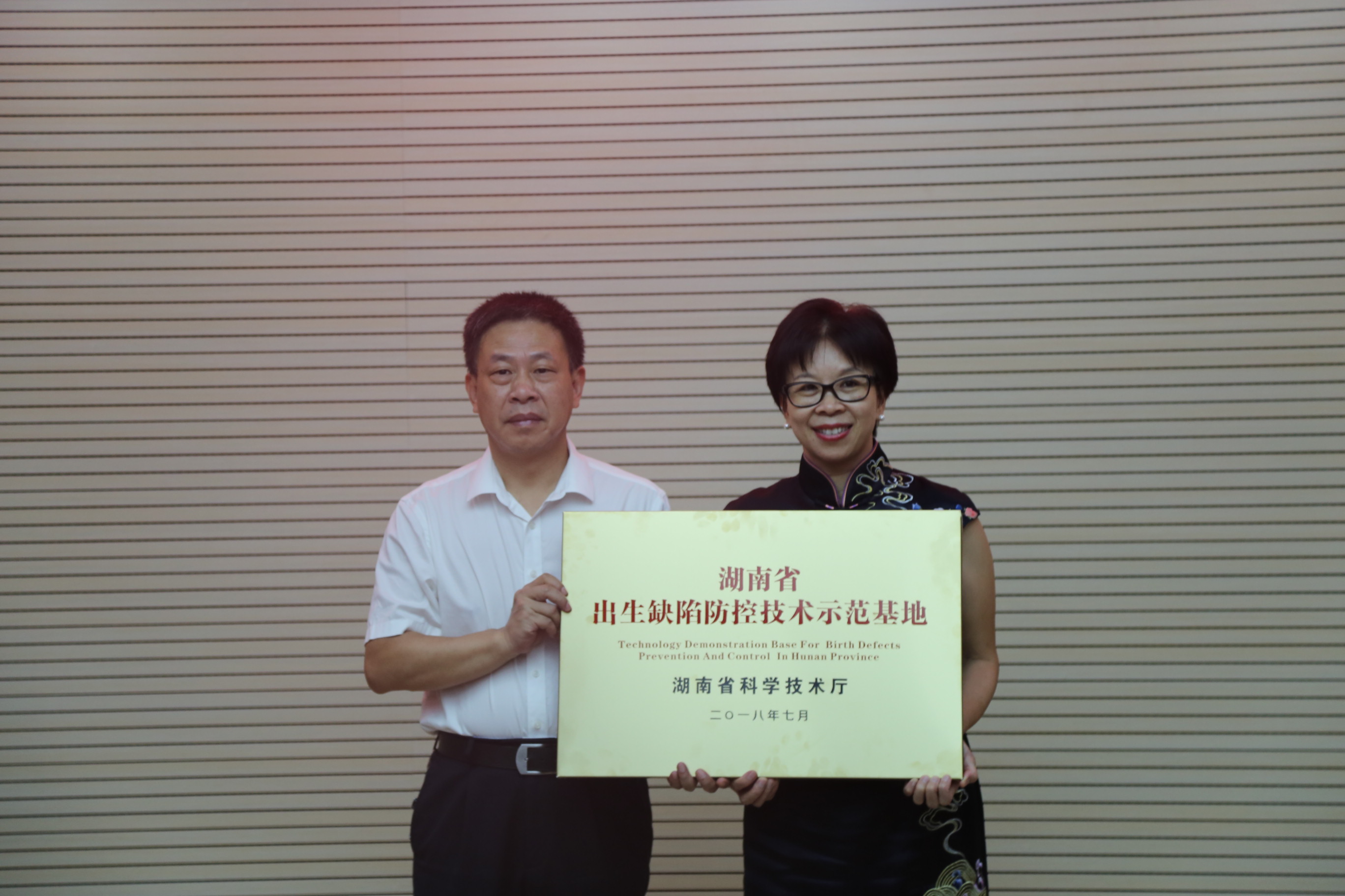 ? ? ? ?經(jīng)過湖南省科技廳審查、技術(shù)評審、綜合評審和公示等程序最終獲批,湖南省出生缺陷防控技術(shù)示范基地落戶郴州市第一人民醫(yī)院。9月18日,湖南省出生缺陷防控技術(shù)示范基地授牌儀式在該院舉行。